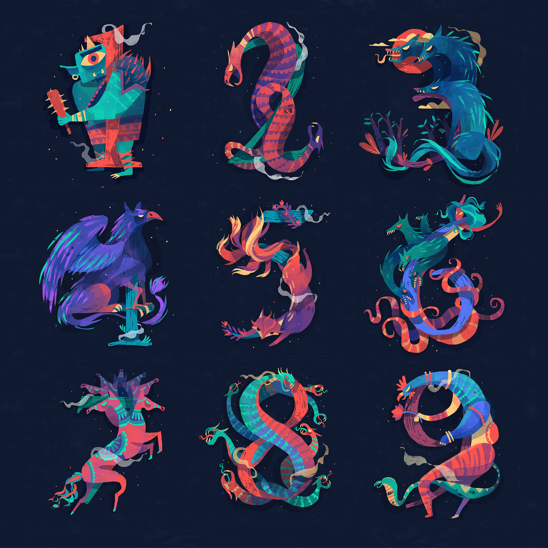 For 2018's edition of "36 Days of Type" (http://www.36daysoftype.com/) I designed letters of the alphabet based on mythical creatures/legendary monsters from various cultures across the world. I also drew monsters for the numerals 0-9.
