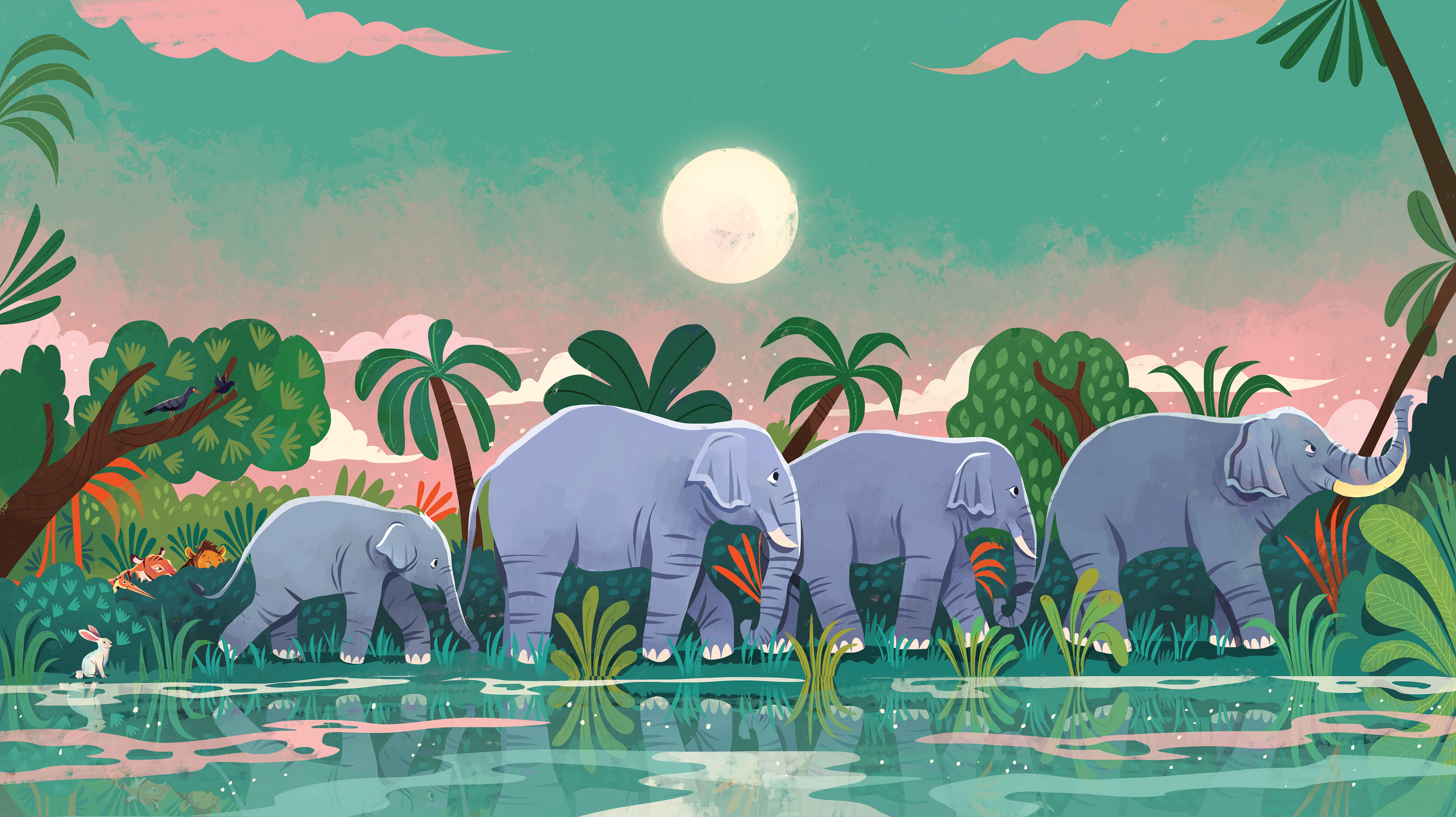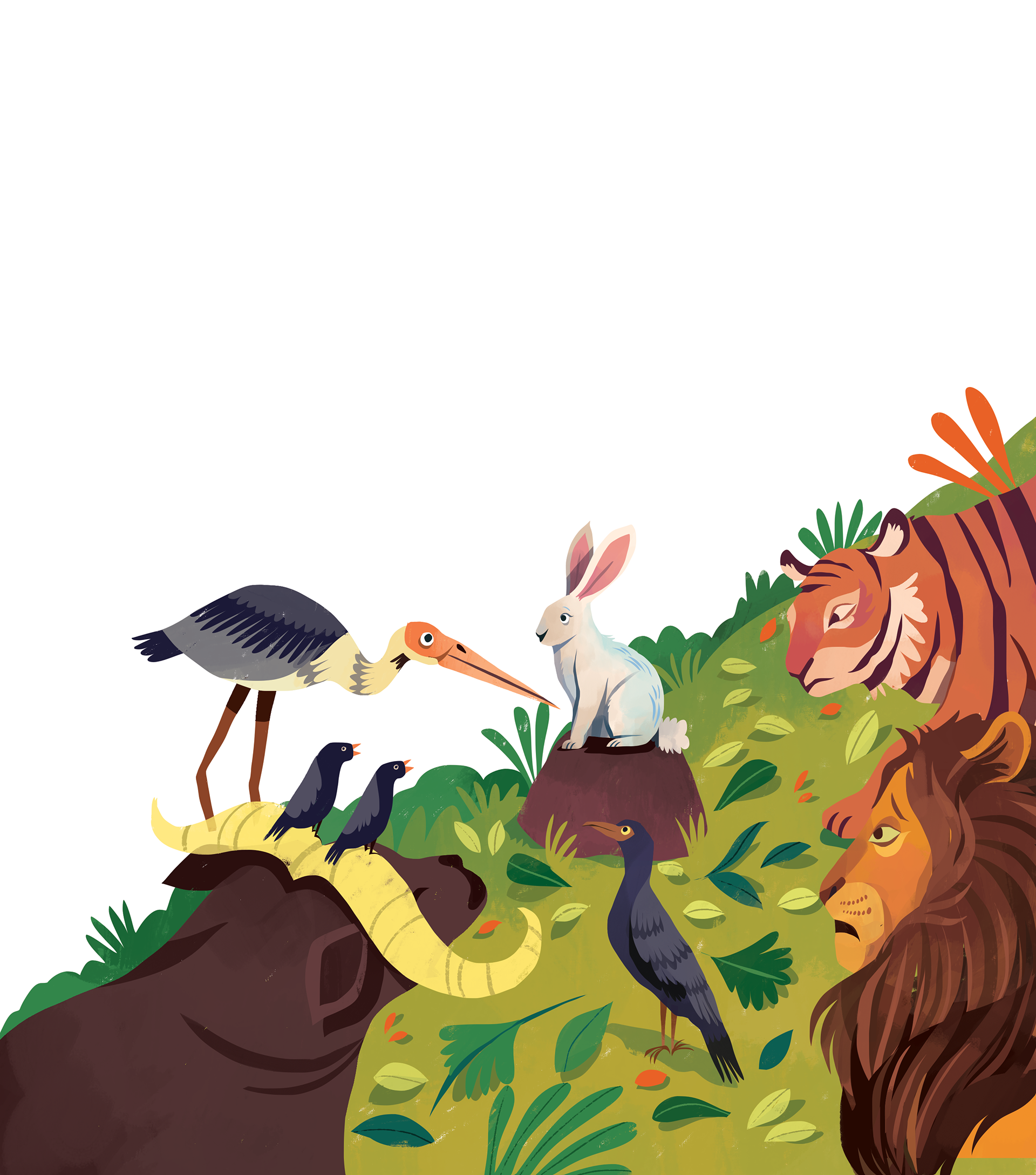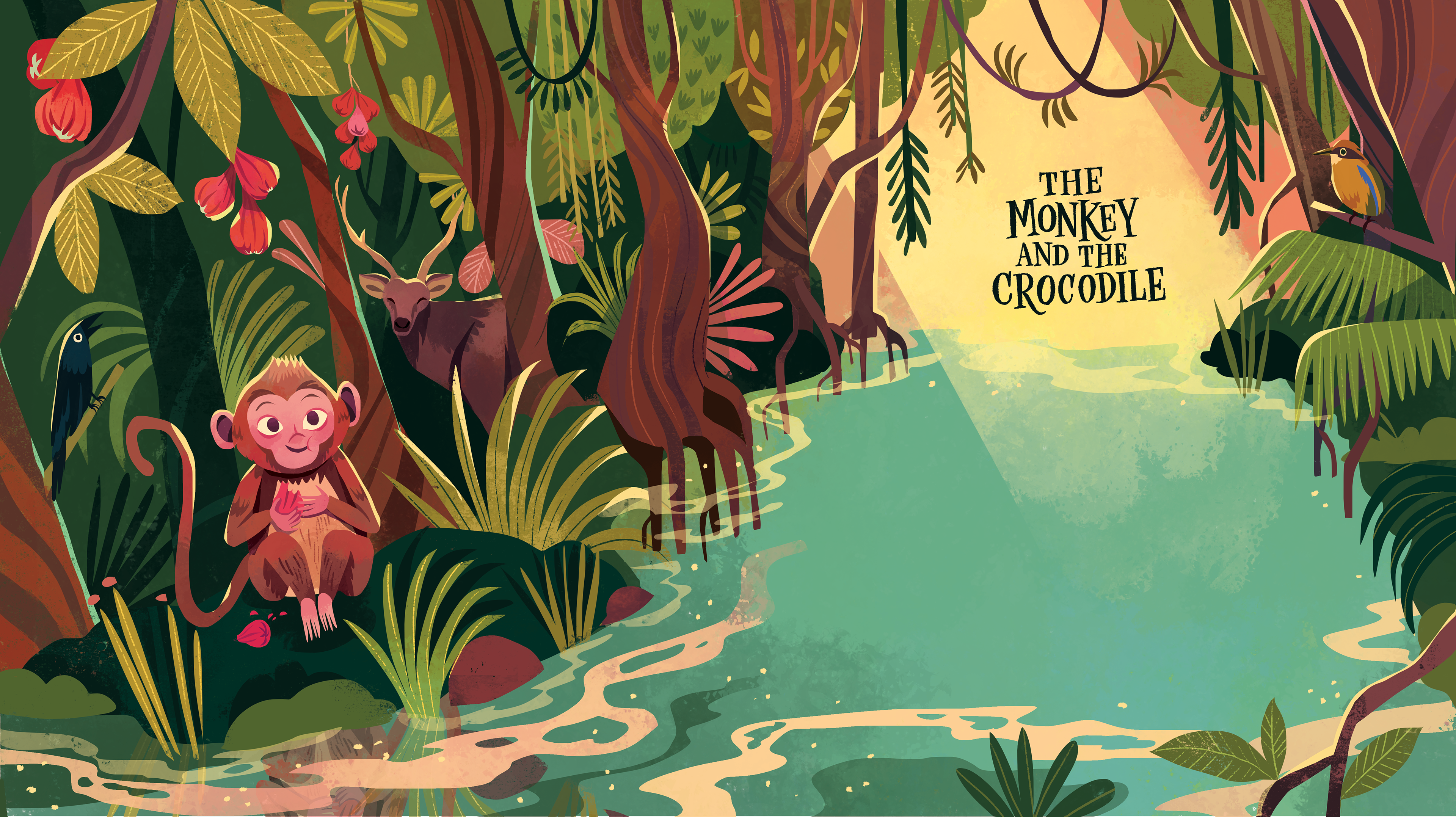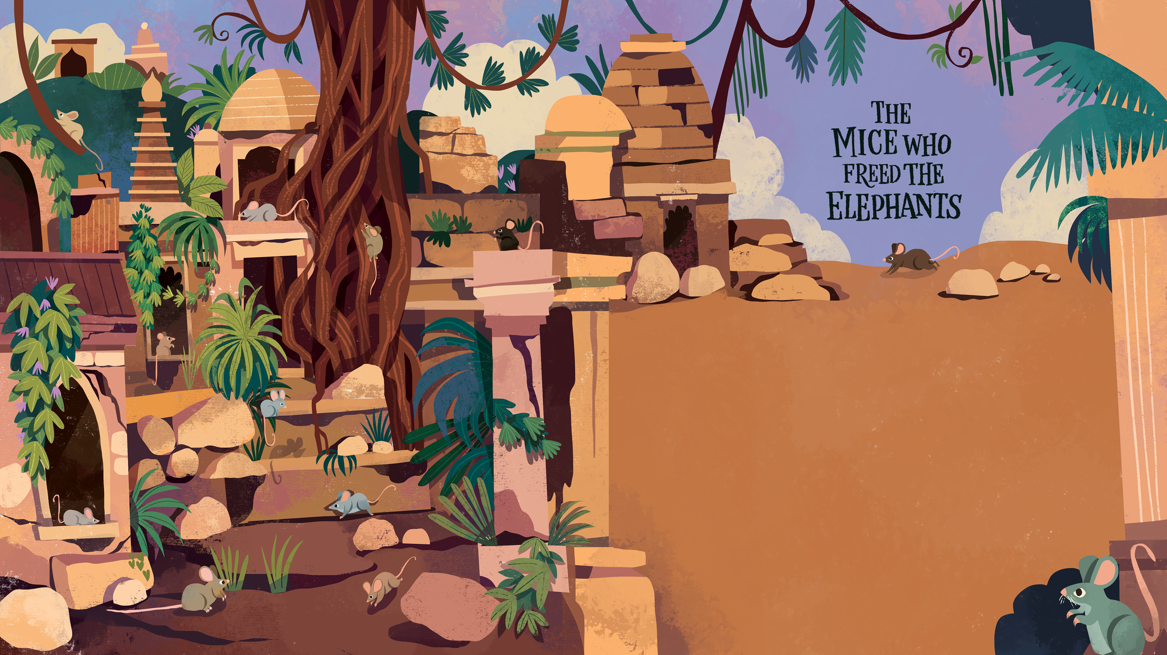 Illustrations for "Animal Tales from India: Ten Stories from the Panchatantra", written by acclaimed poet Nikita Gill, and published by Nosy Crow, 2023.