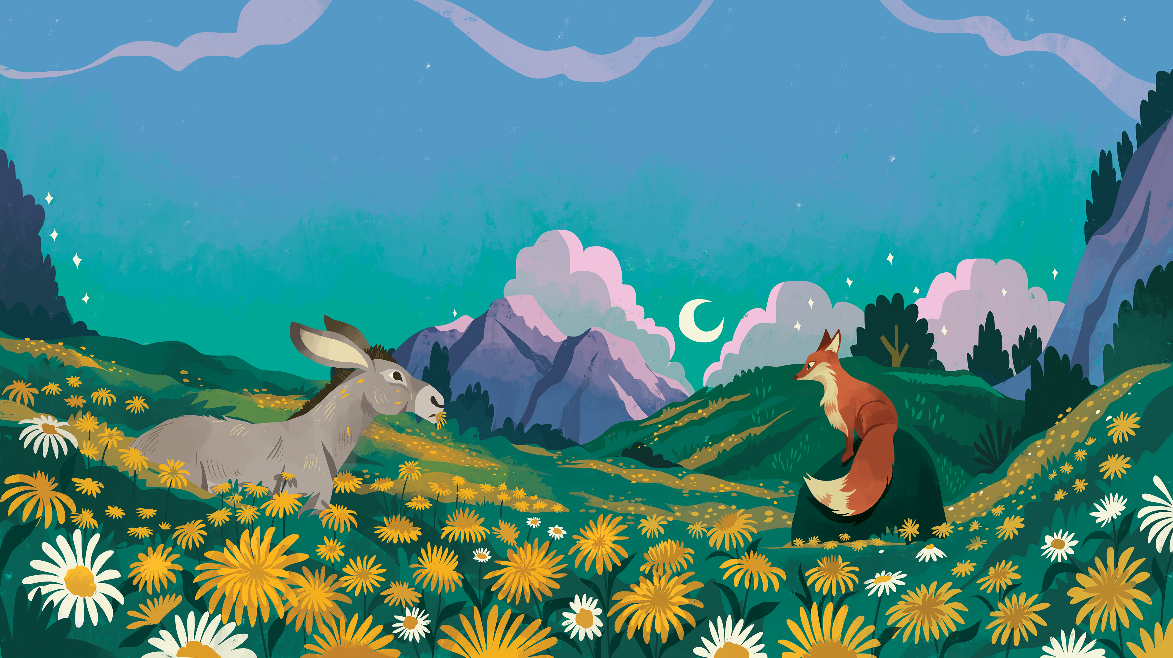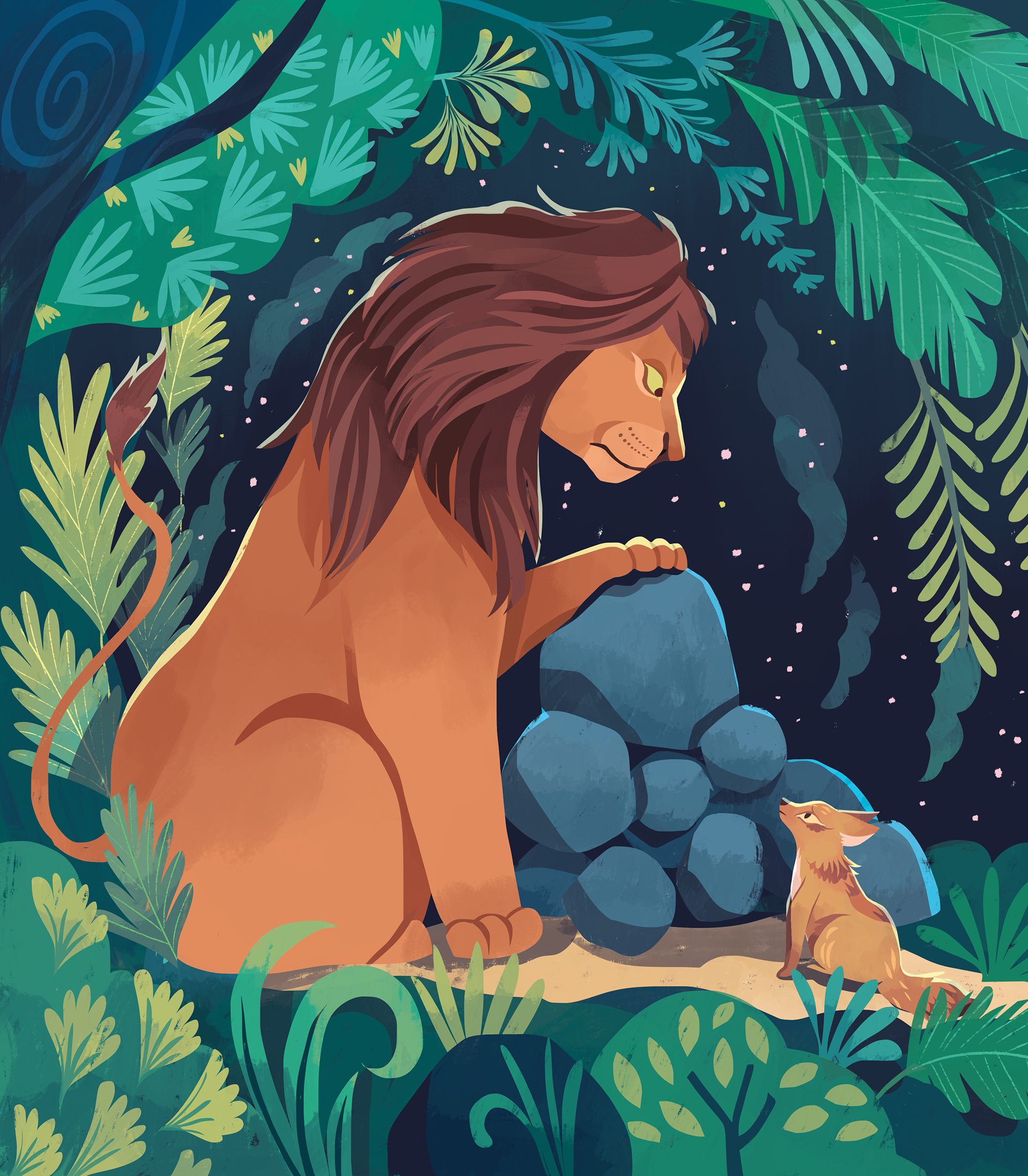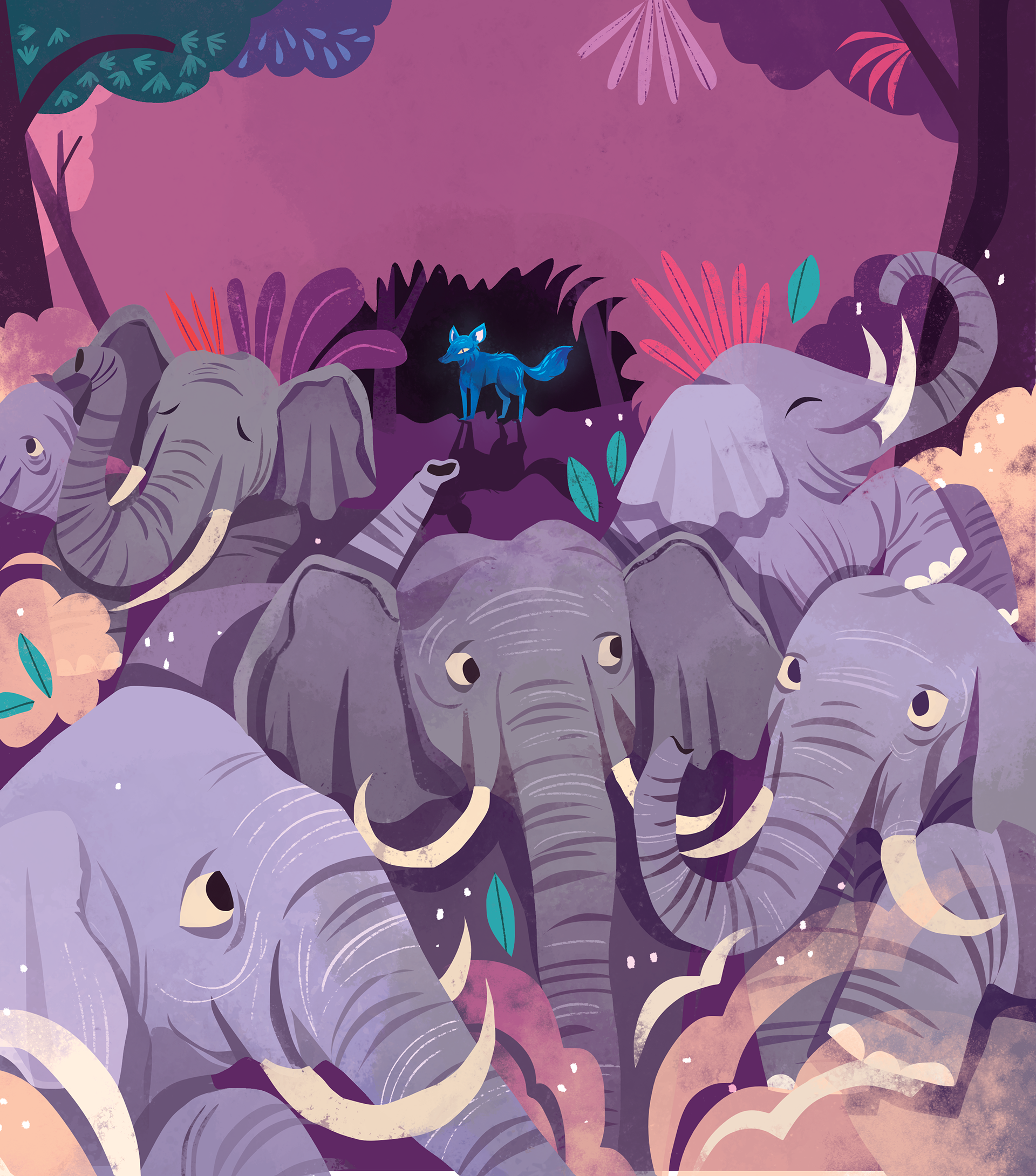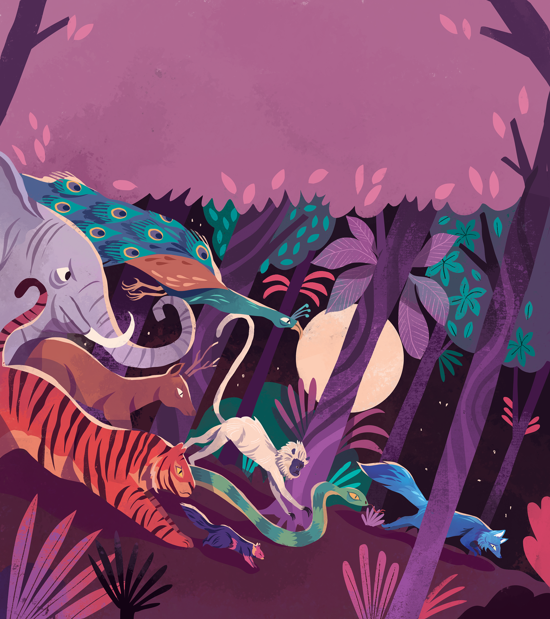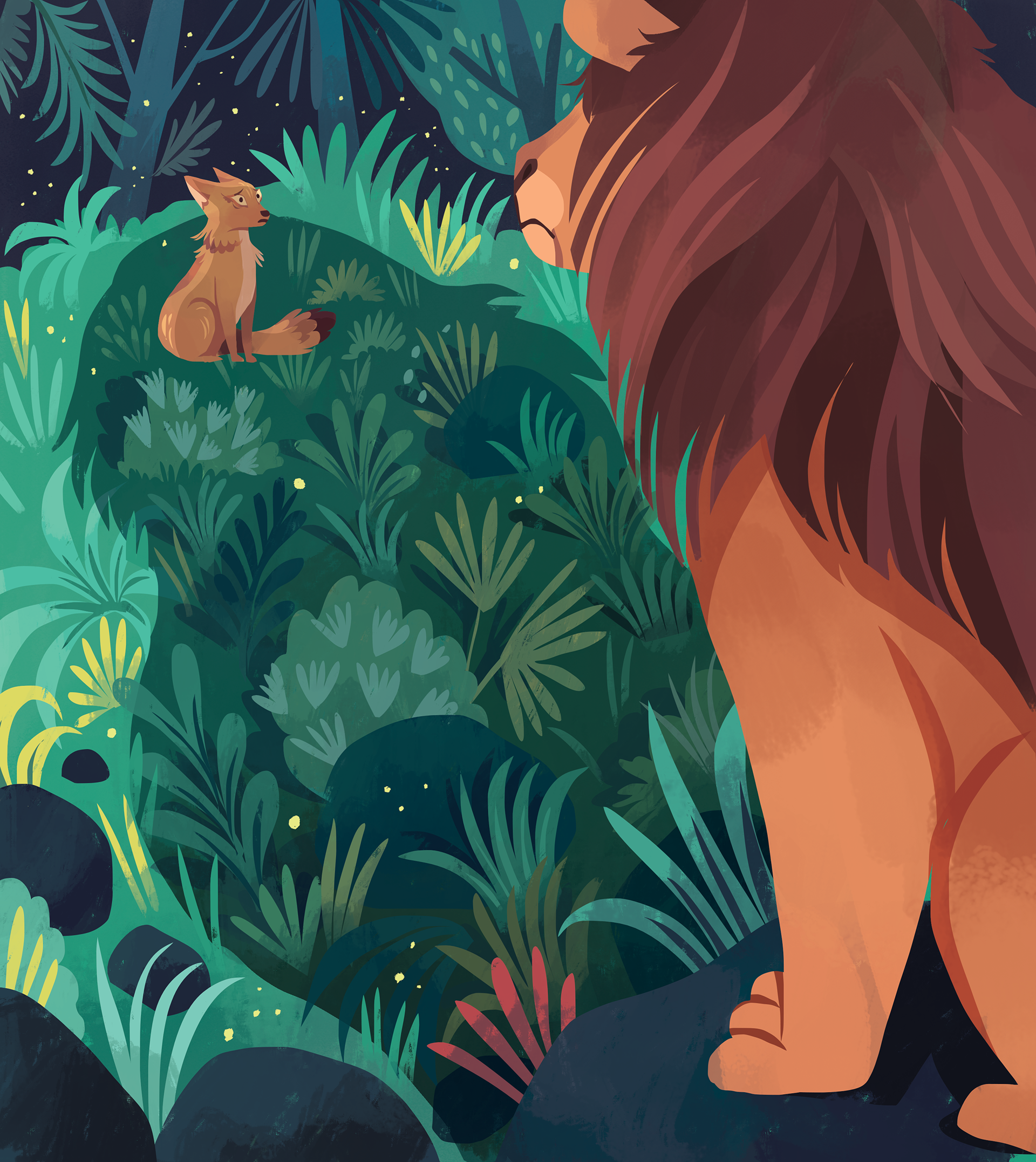 Illustrations for "Animal Tales from India: Ten Stories from the Panchatantra", written by acclaimed poet Nikita Gill, and published by Nosy Crow, 2023.