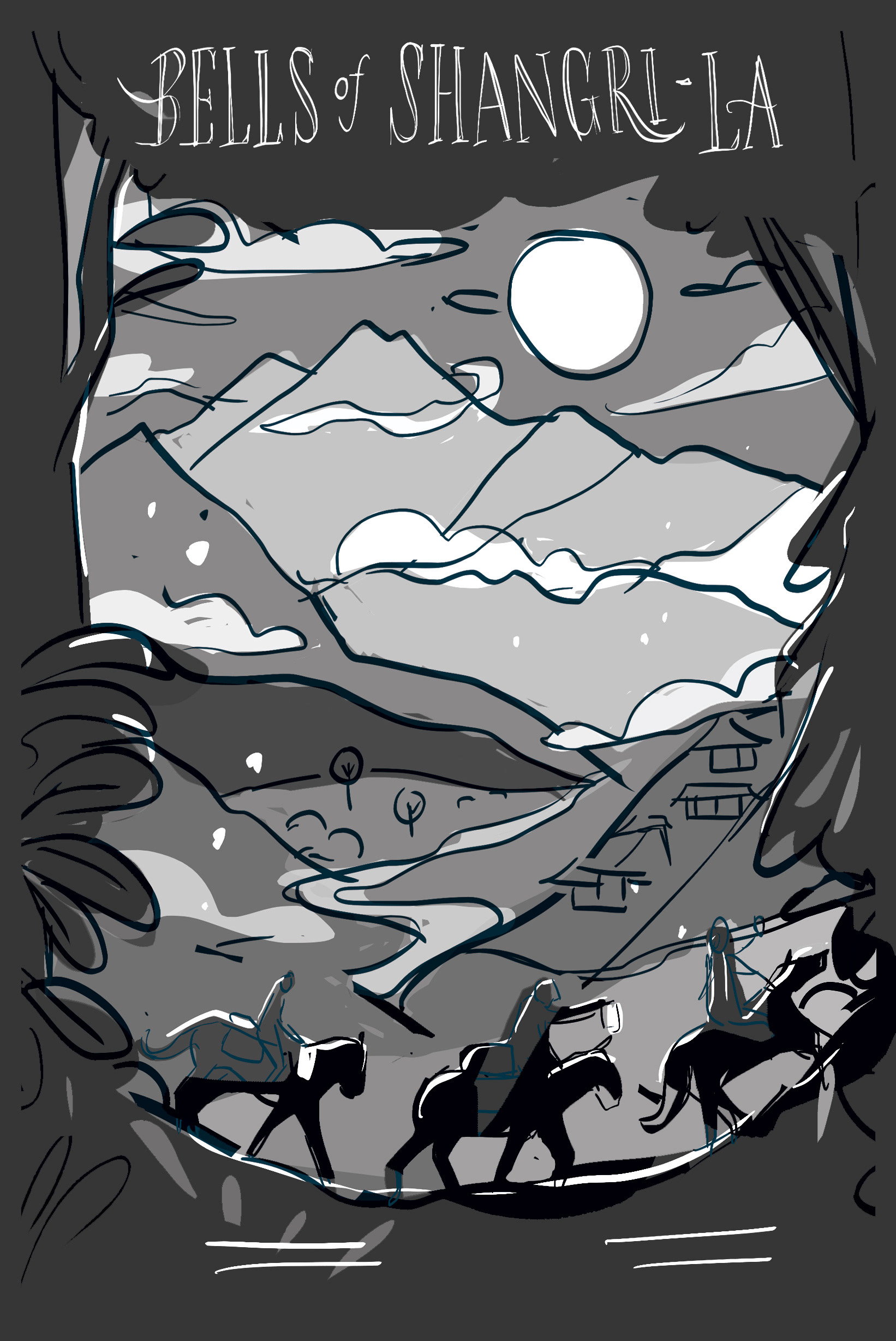 Book cover illustration for "Bells of Shangri-La", written by Parimal Bhattacharya and published by Speaking Tiger Books in February 2019.