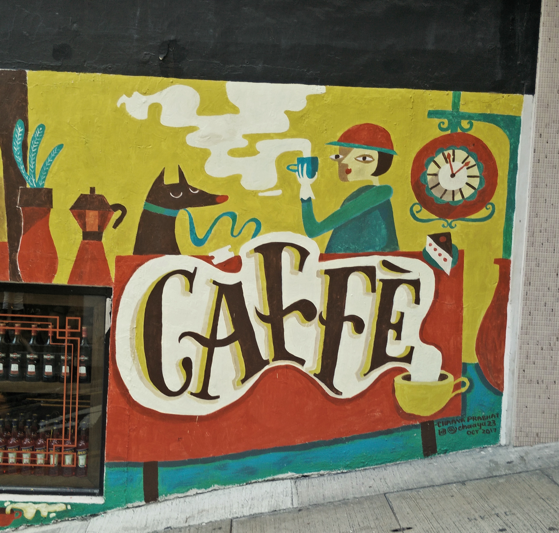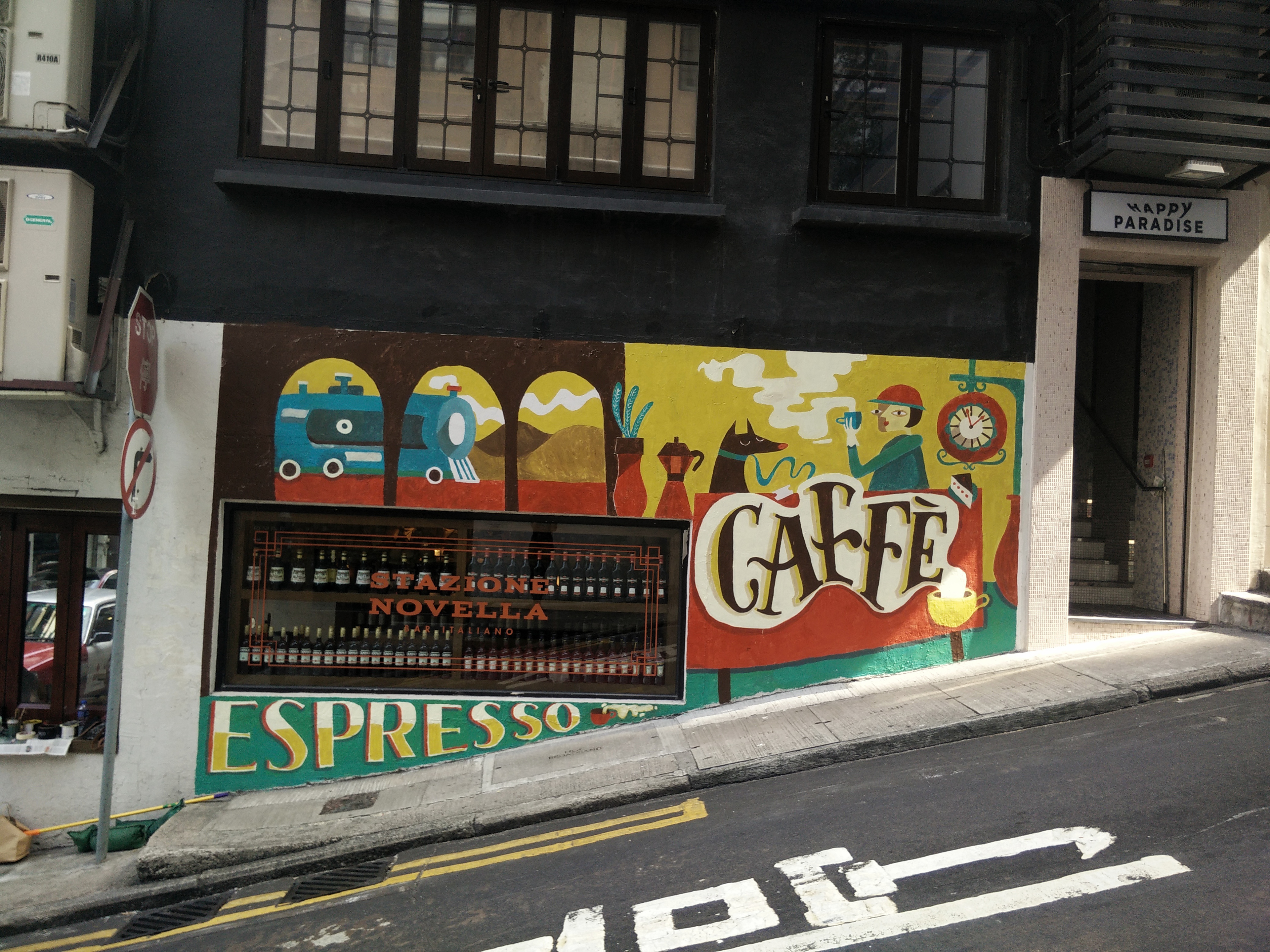 I was commissioned to paint a coffee-themed wall mural, reminiscent of vintage Italian coffee posters for the restaurant Stazione Novella in Hong Kong during October, 2017.