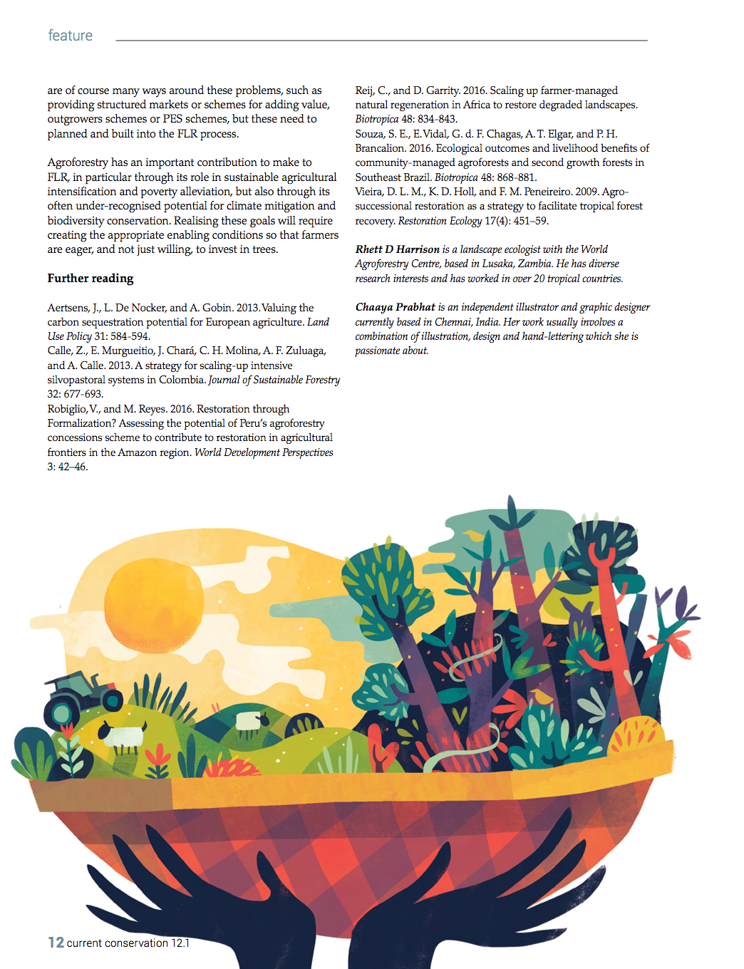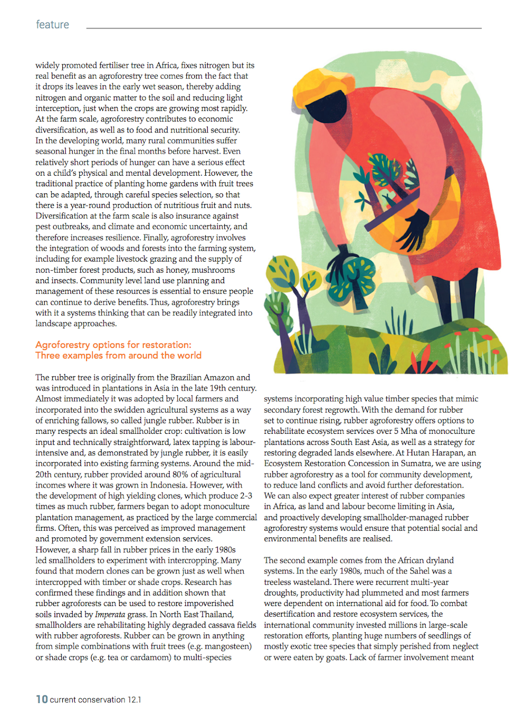 I made a few spot illustrations for Current Conservation Magazine's article on Agroforestry, published in May 2018.