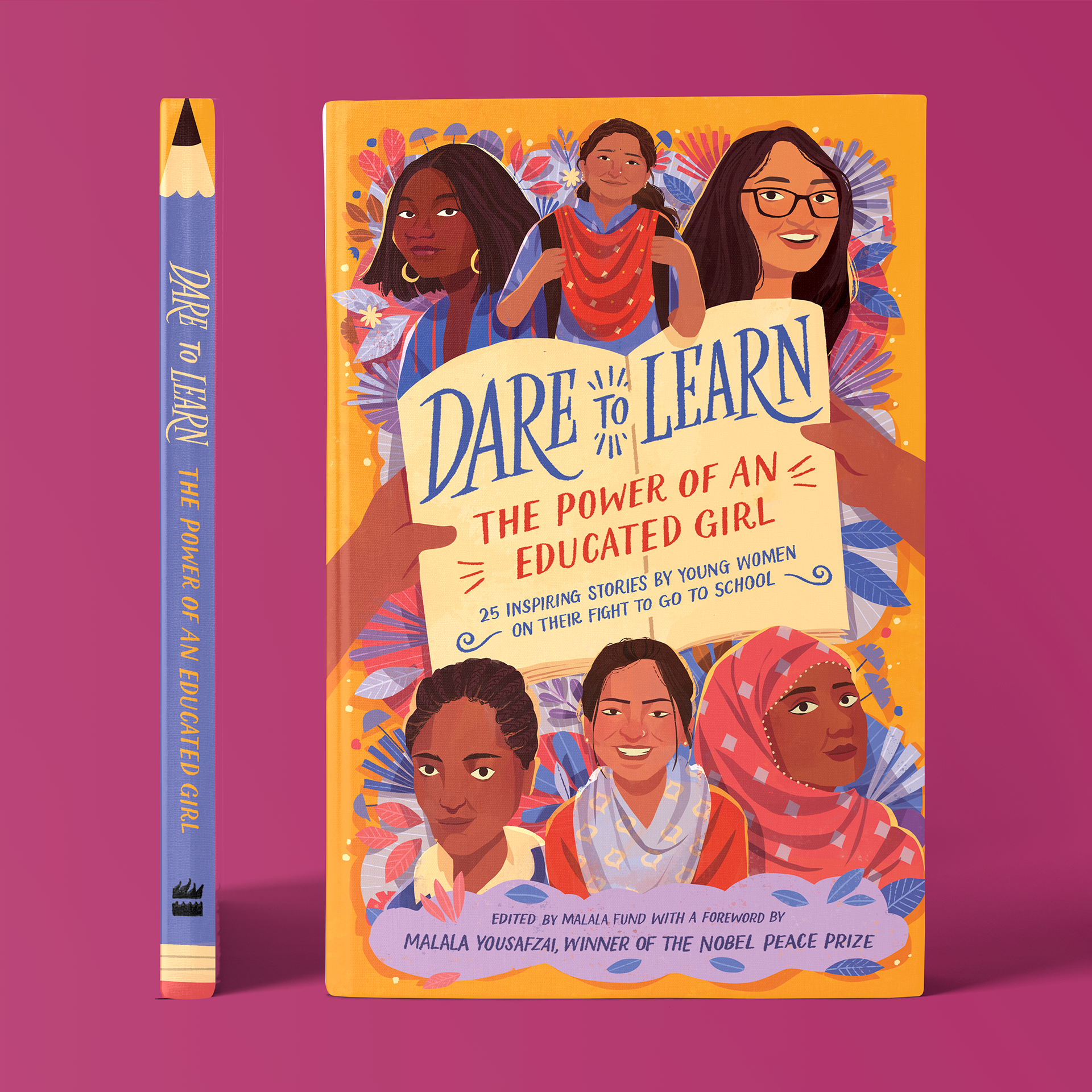 Book cover illustration and letteringĀ for "Dare To Learn: The Power of An Educated Girl" edited by Malala Fund and published by Harper Collins India, 2022