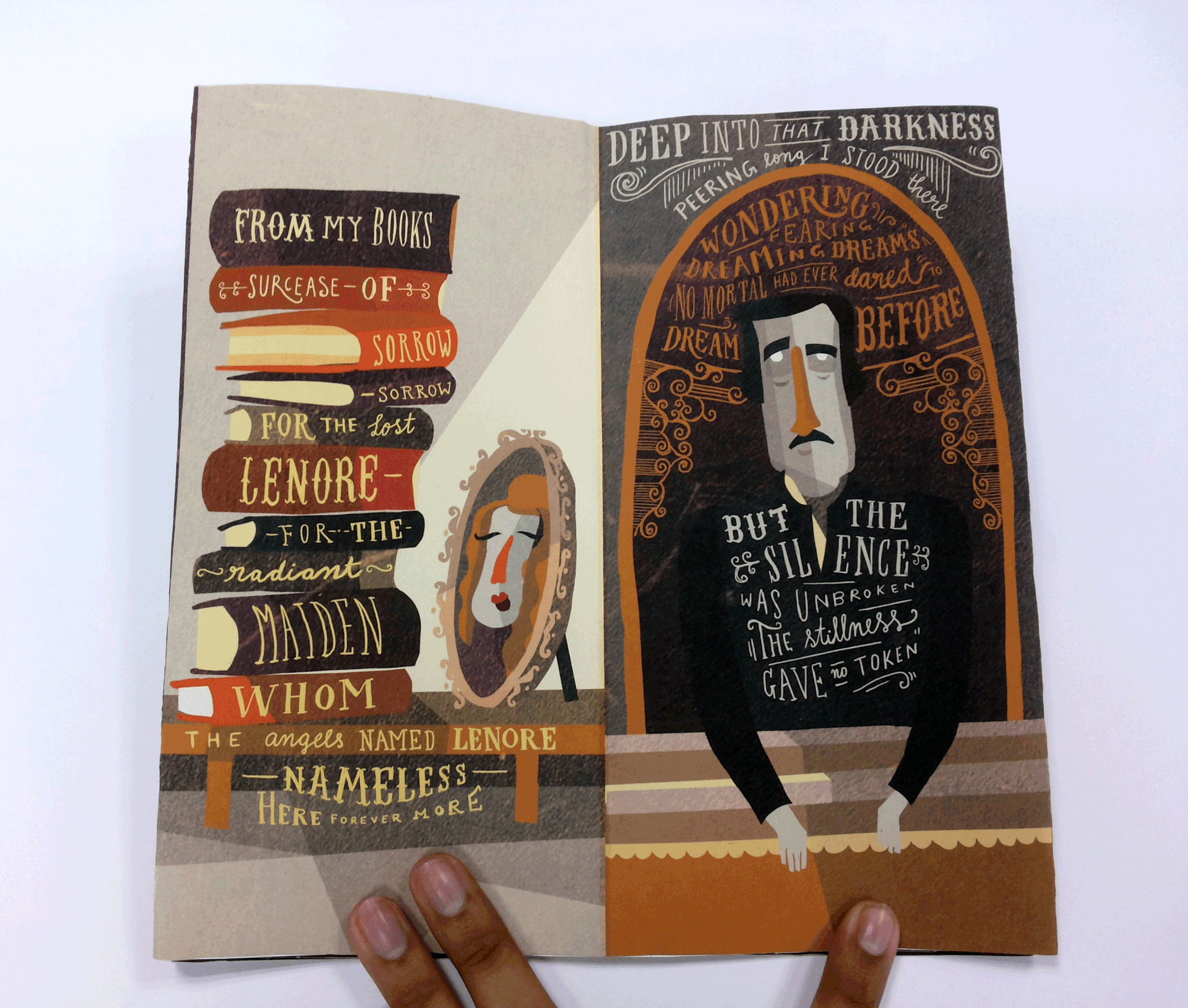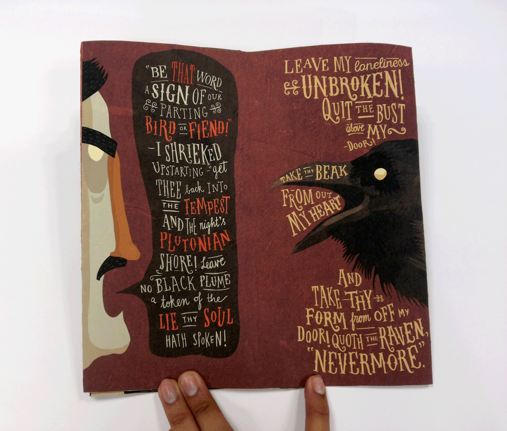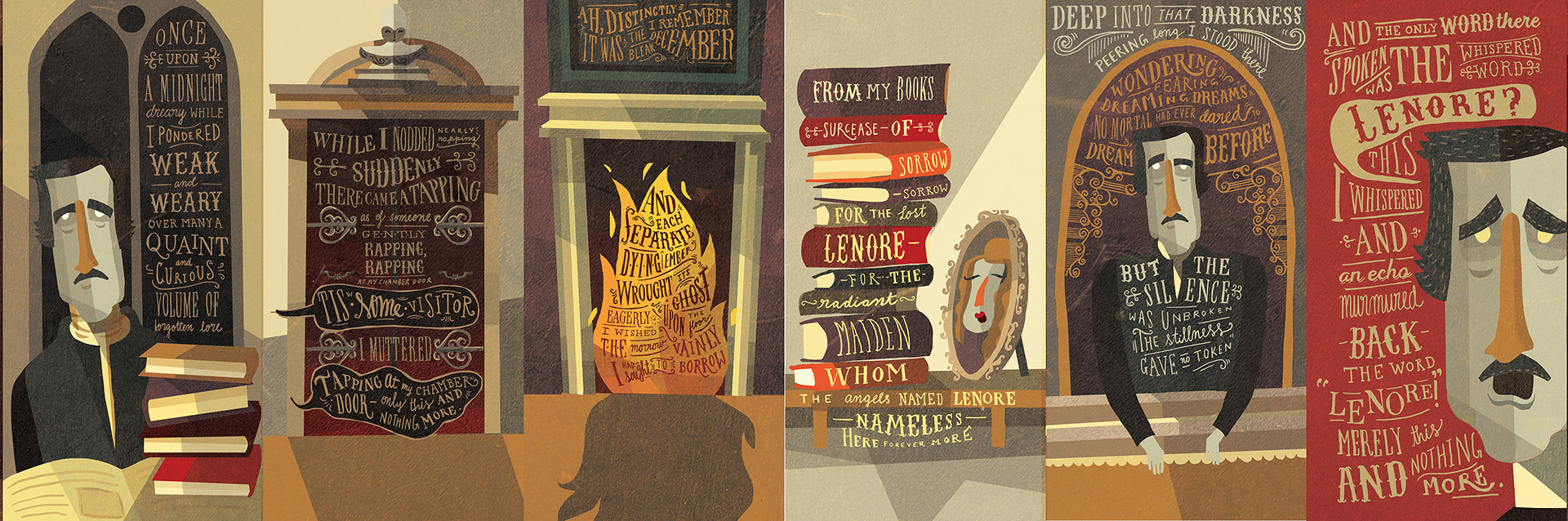 Using typography and hand-lettering to illustrate Edgar Allan Poe's famous Poem, "The Raven".