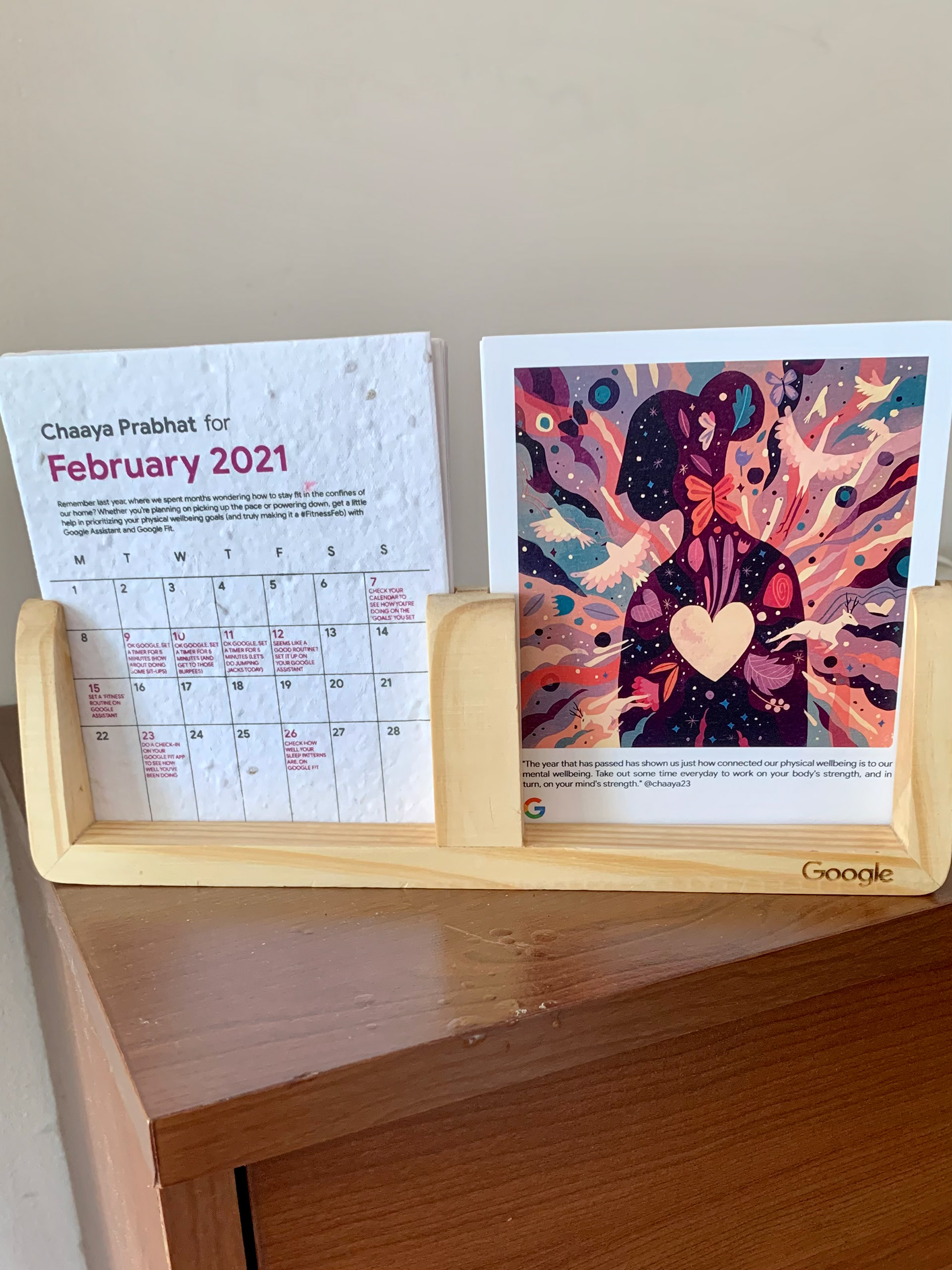 Illustration for Google India's 2021 mental-health themed calendar. The calendar was printed on handmade paper embedded with seeds that could be planted once the month was completed.