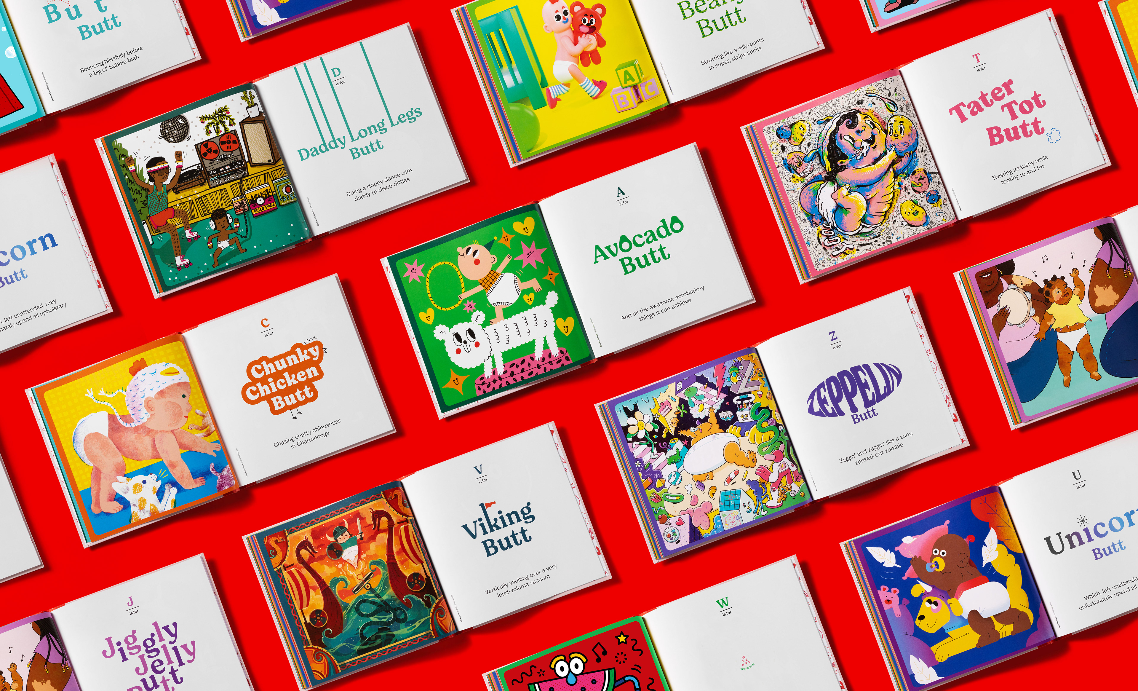 Illustration for Huggies campaign - Quality Meats teamed up with Huggies to write a children's book on the various shapes and sizes of baby's butts, called The AlphaButt Book: An ABCs of Baby Butts and Bodies.