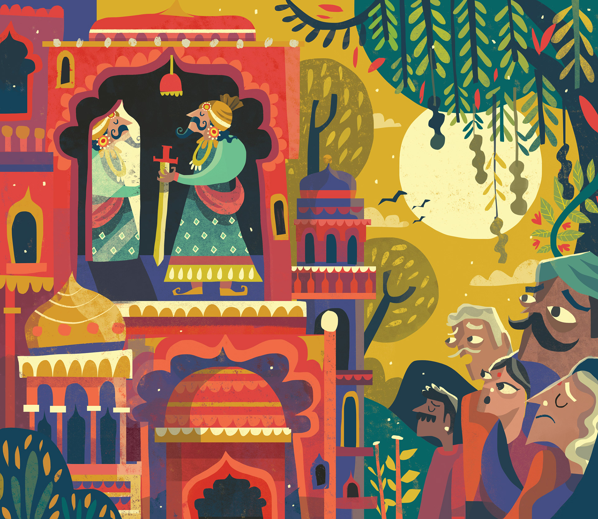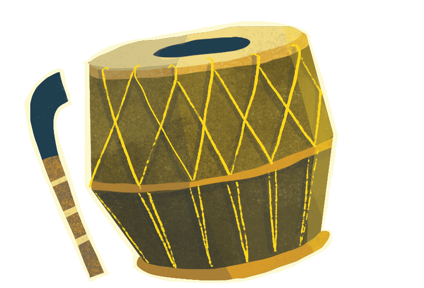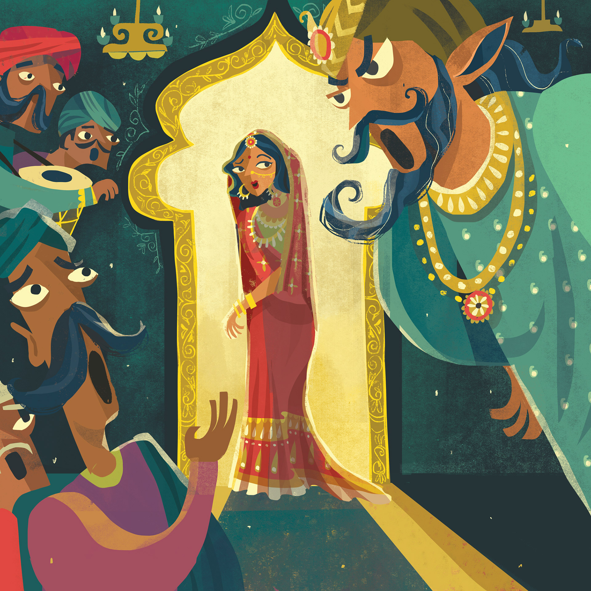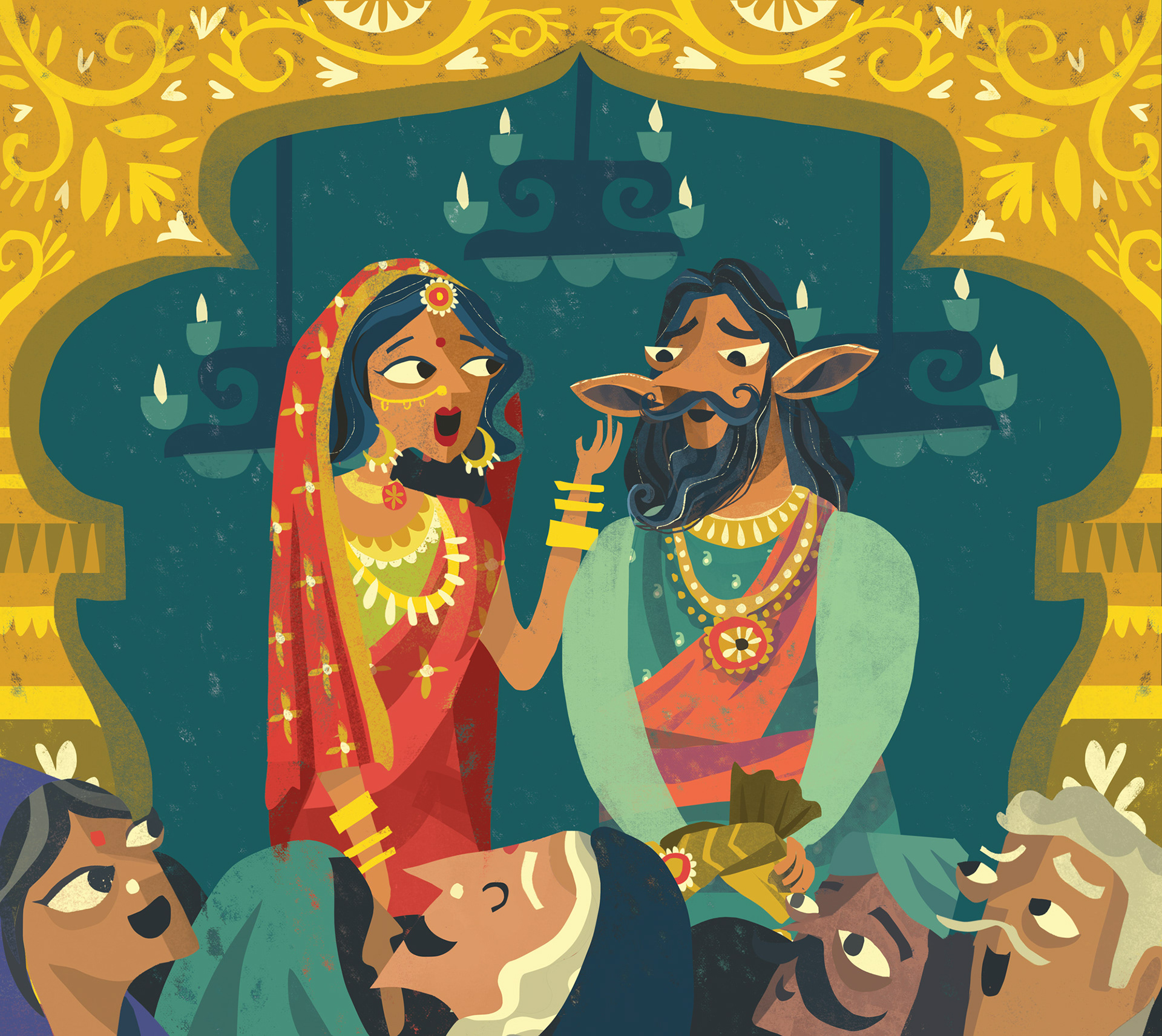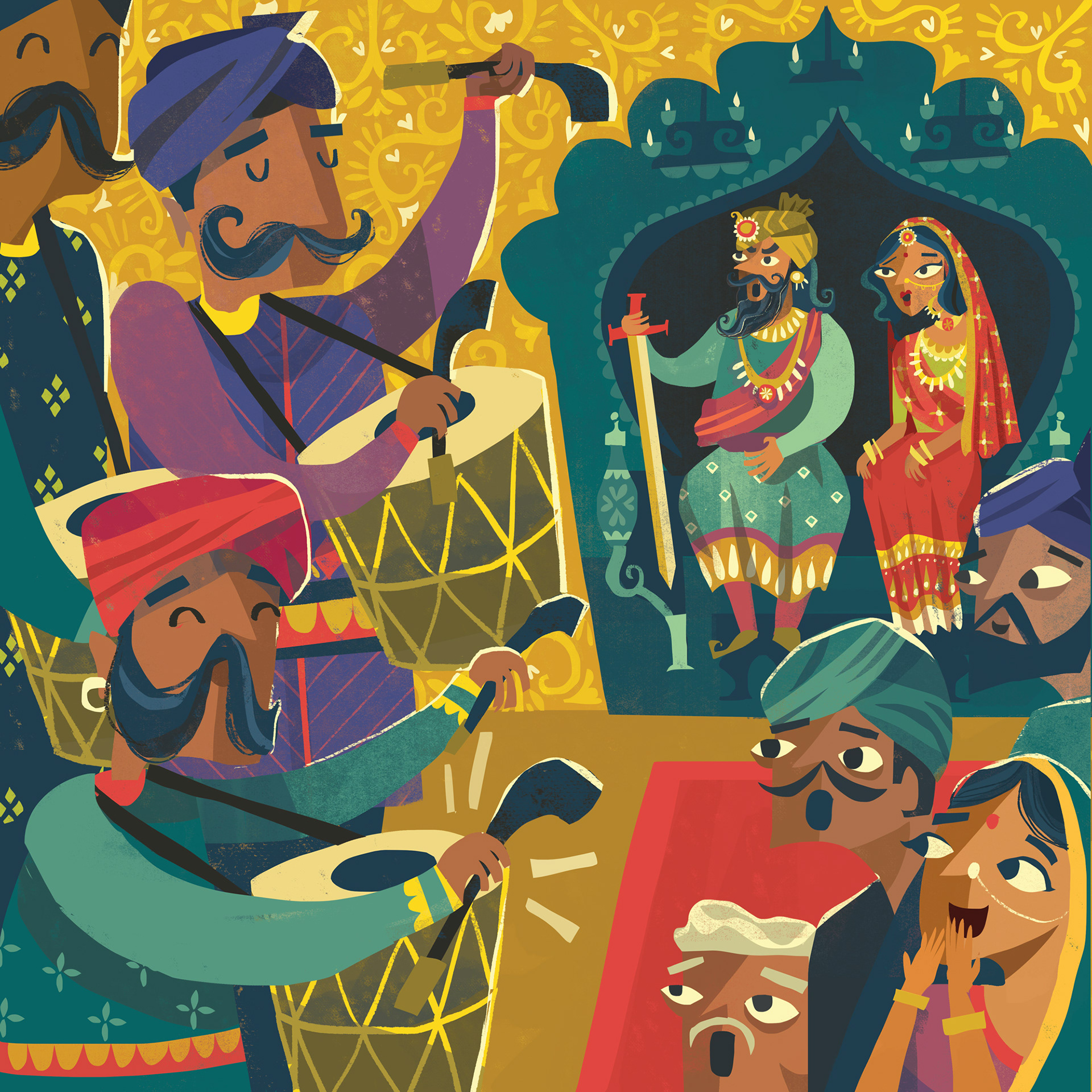 Illustrations forĀ "Look" published by National Geographic Learning/Cengage for a folktale "The King and the Drum".