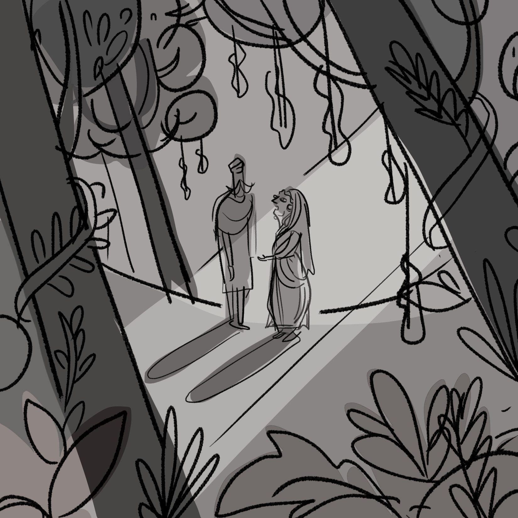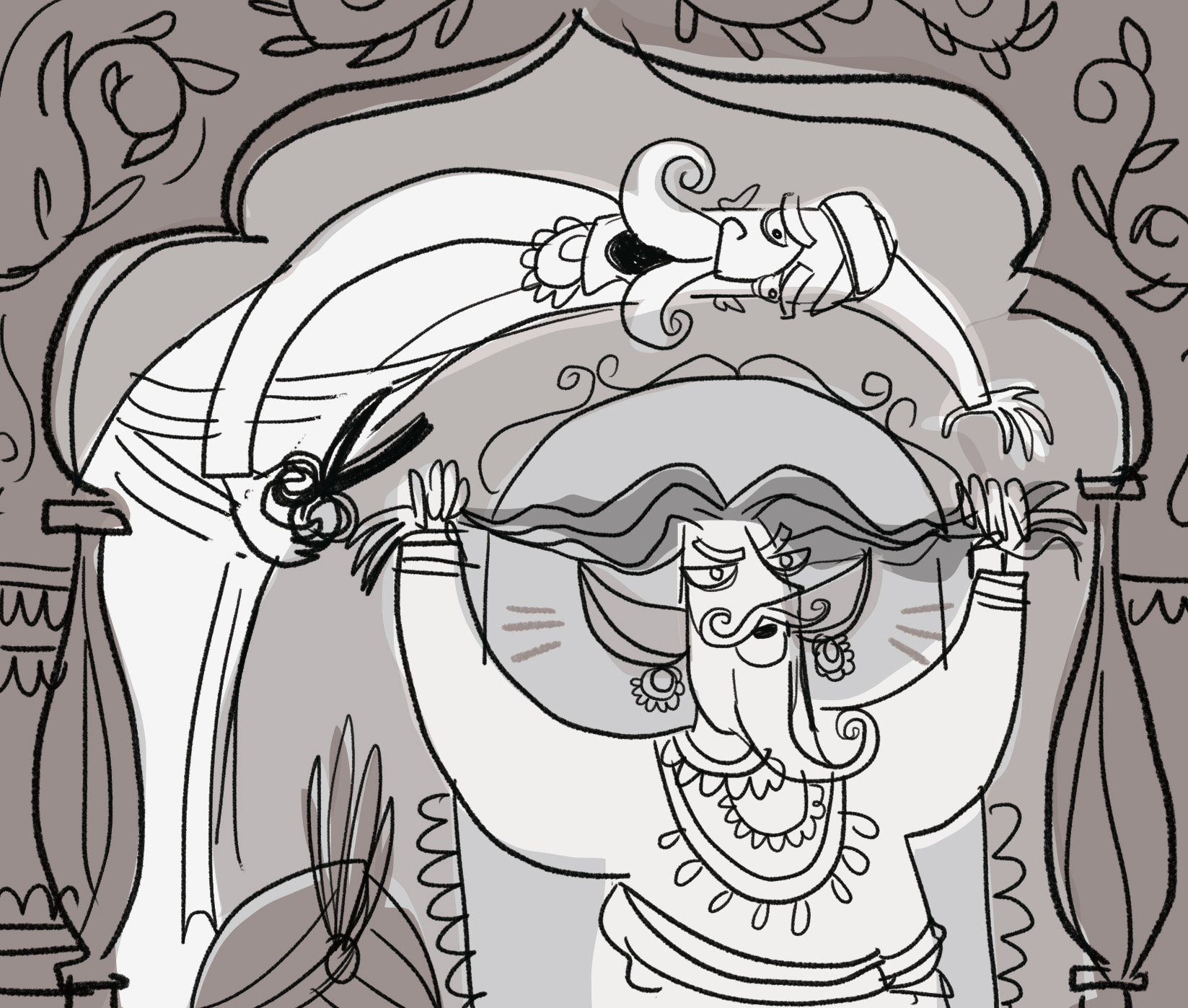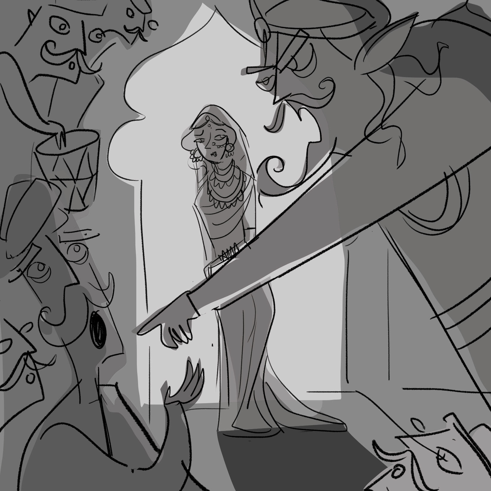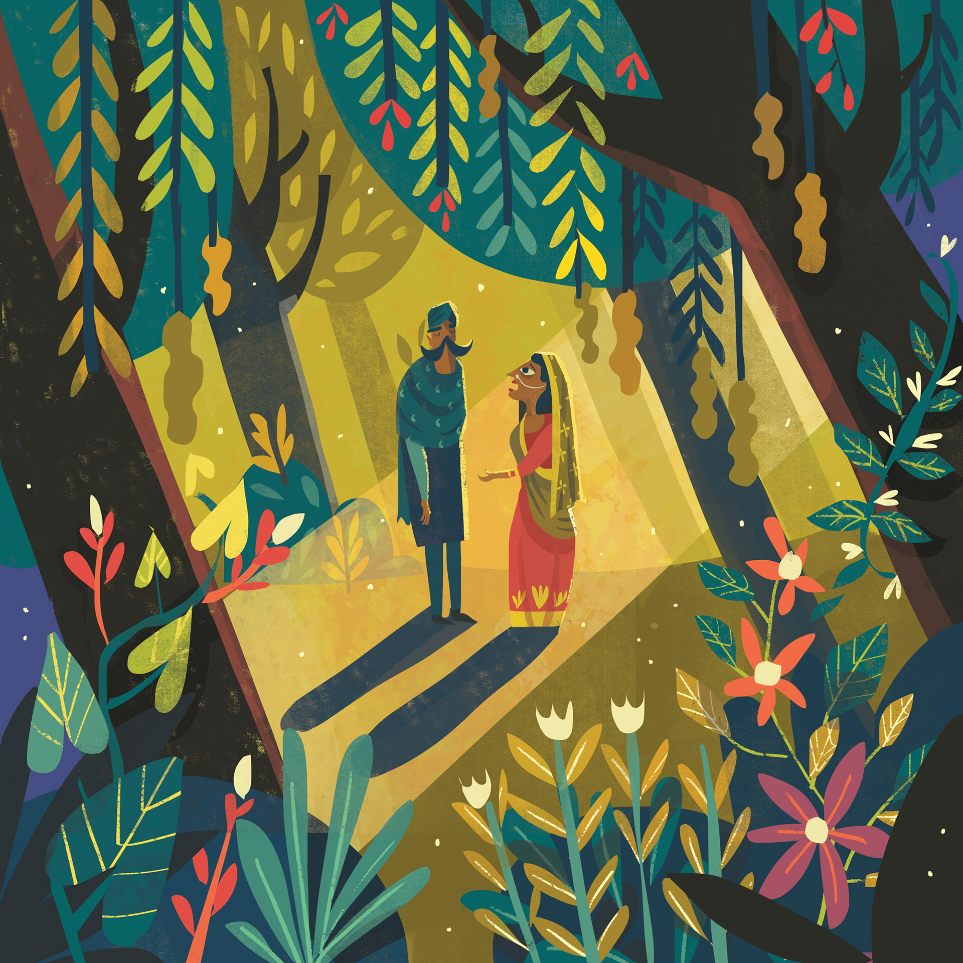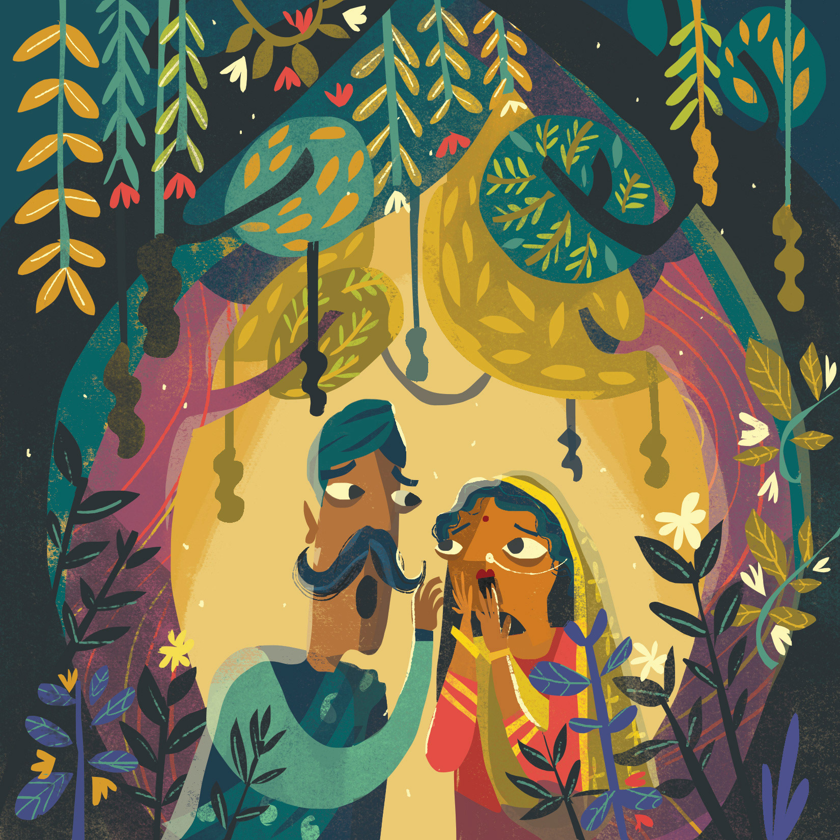 Illustrations forĀ "Look" published by National Geographic Learning/Cengage for a folktale "The King and the Drum".